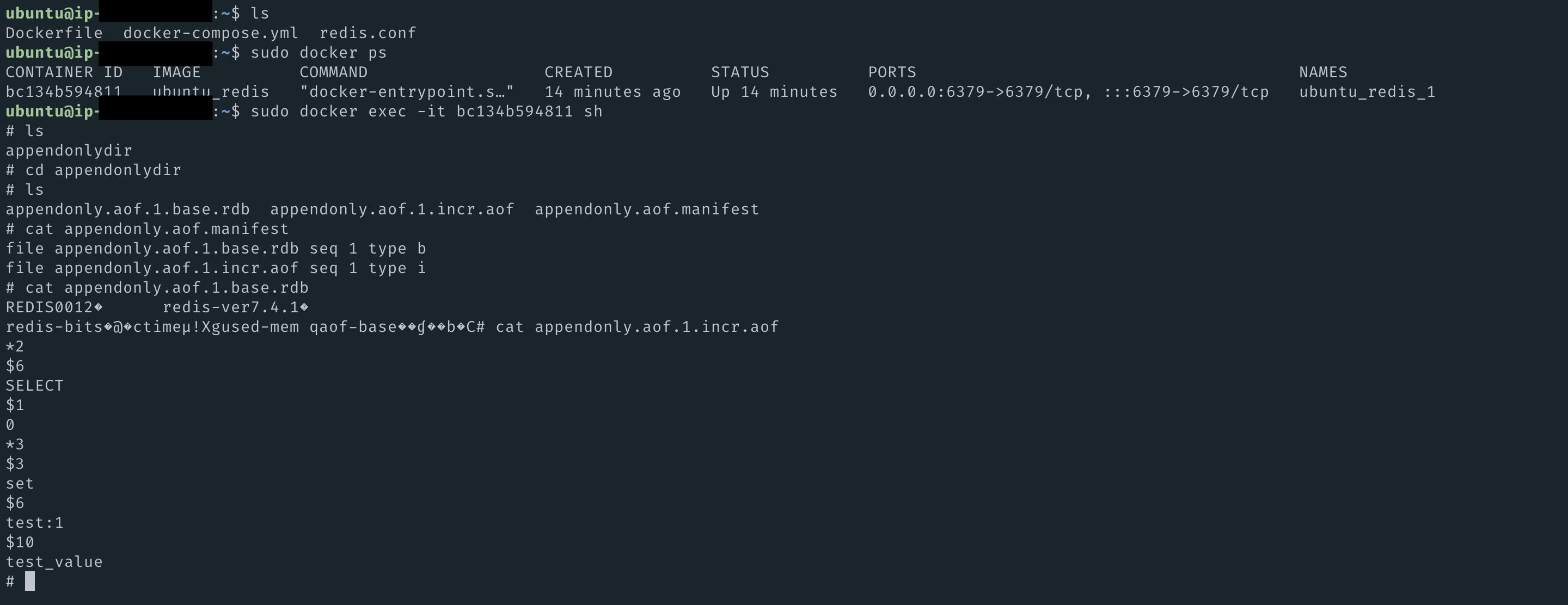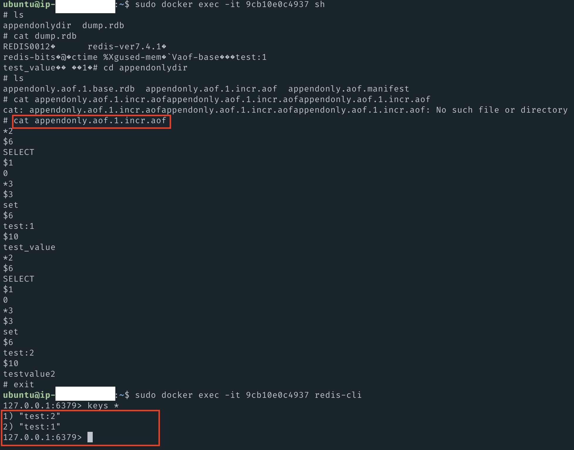 이렇게 3개의 파일이 생성돼있었는데, 로그는 appendonly.aof.1.incr.aof 파일에 적히는 것 같다..