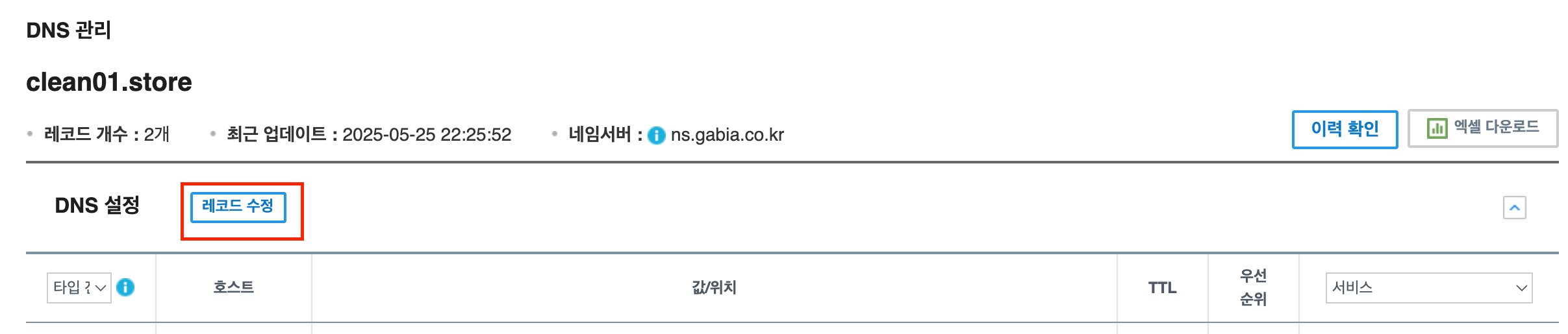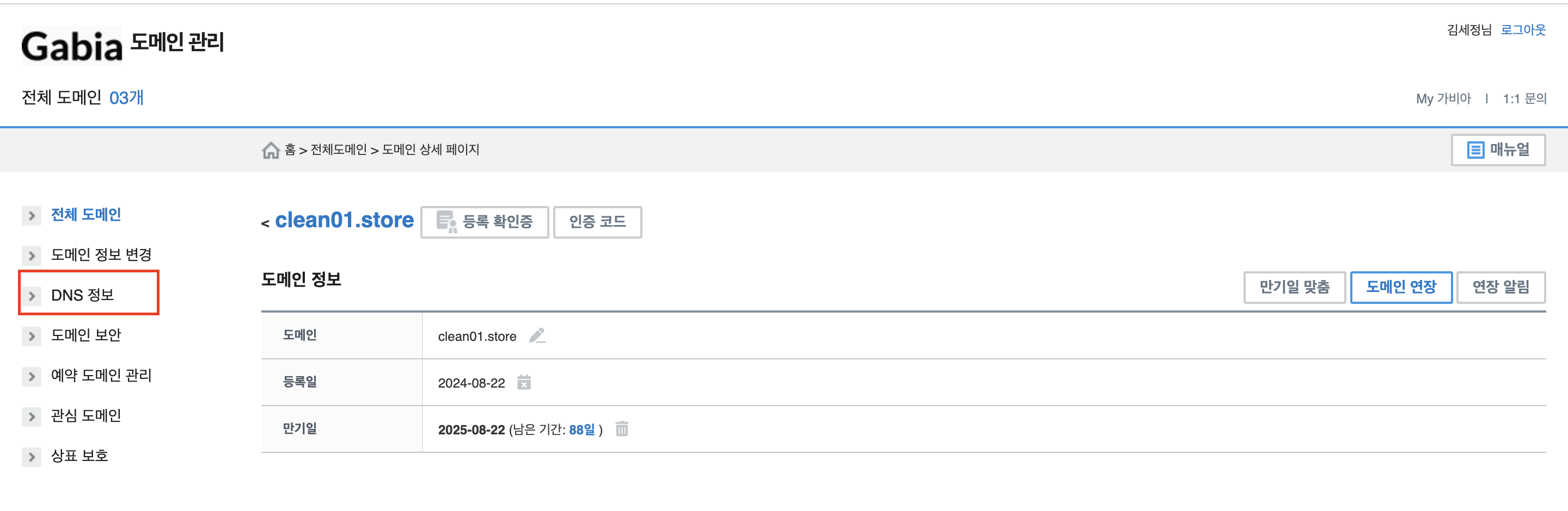 나는 예전에 사놓았던 도메인이 있어서 바로 그 도메인 관리페이지로 들어갔다.