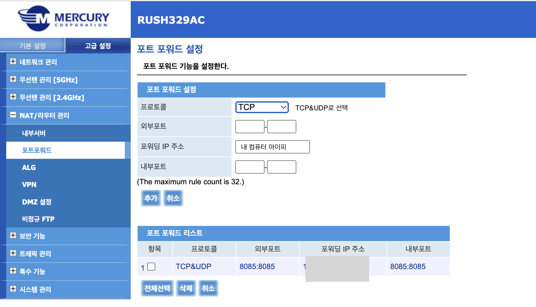 MERCURY Corparation(머큐리 코퍼레이션) 포트 포워드 - 포트를 직접 열어서 좀 더 쾌적한 환경에서 게