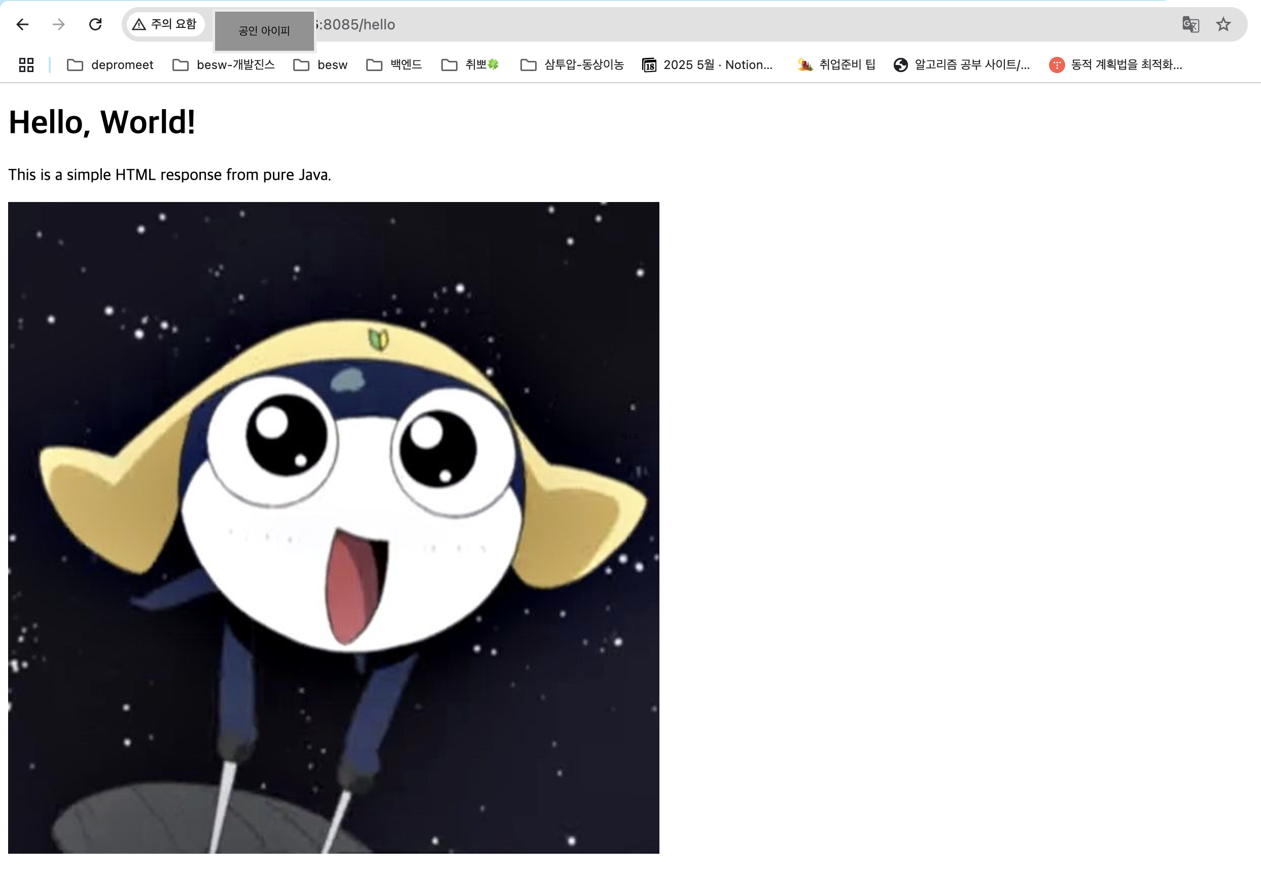 이렇게 실행하고, localhost:8085/hello에 접속해보면 잘들어가진다.