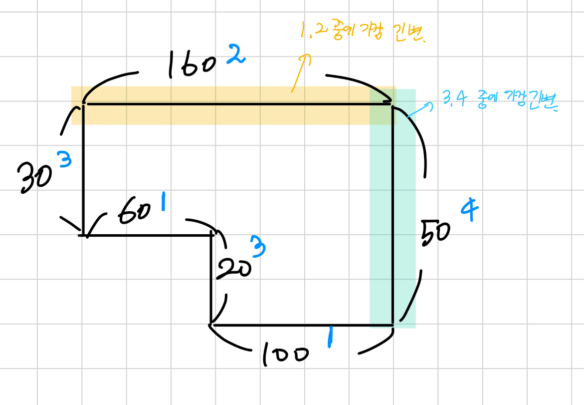 2. 가로, 세로에서 가장 긴 변 구하기