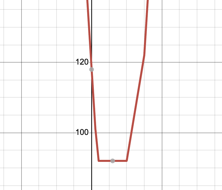 이런 경우 그래프의 개형은 아래 사진과 같이 나오게 되고, 10~15까지 기울기가 0인 모든 위치에 우체국을 설치해도 최소값이 됩니다.